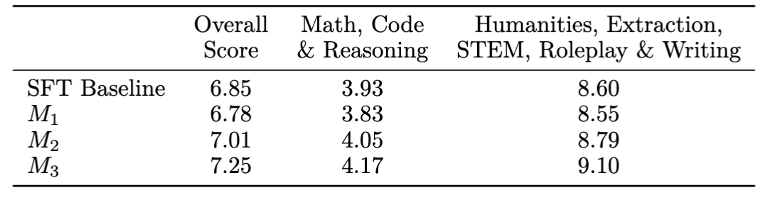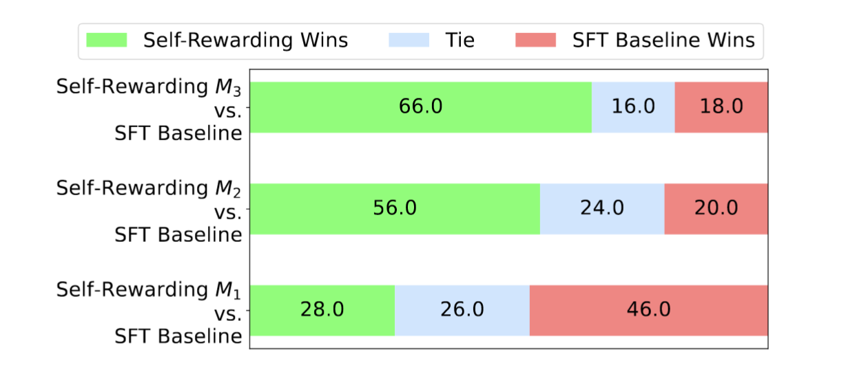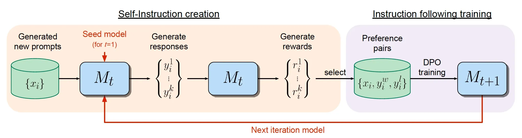 - 迭代优化: 完成两轮自我奖励训练循环(得到M2和M3模型)
