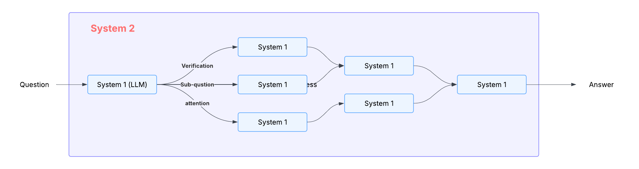 这代表了一种更深层次的思维模式,目前主要通过CoT来实现。在生成最终答案之前,System 2会进行系统性的推理分析。它具有以下优势: